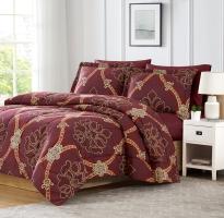 1 Comforter 82"x86", 1 Flat Sheet 81"x96", 2 Pillow Shams 20"x26", 1 Fitted Sheet 54"x75"+16" and 2 Pillowcases 20"x30"
