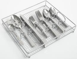Prato 65 pc Flatware Set W/Wire Caddy - Service for 12 plus 4 pc Hostess Set - Tumble Finish - SS - 1.5 mm - GBX