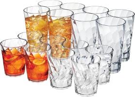 Great Foundations 16 pc Tumbler & DOF Set - Swirl Pattern - Clear - Embossed Glass - GBX