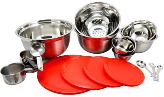 Branfield 21 pc SS Kitchen Prep Set with Measuring Accessories - Mirror Polish - Red PP Lid - SS - 0.4 mm - GBX