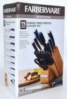 Farberware Forged Triple Riveted Steel Knife Block With Black Handles. 15 Piece Set
